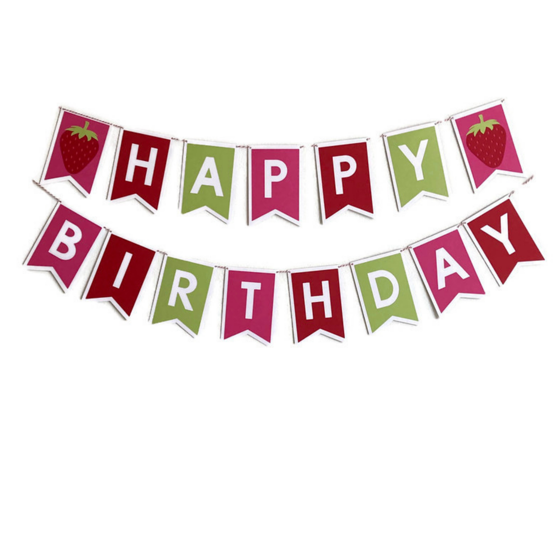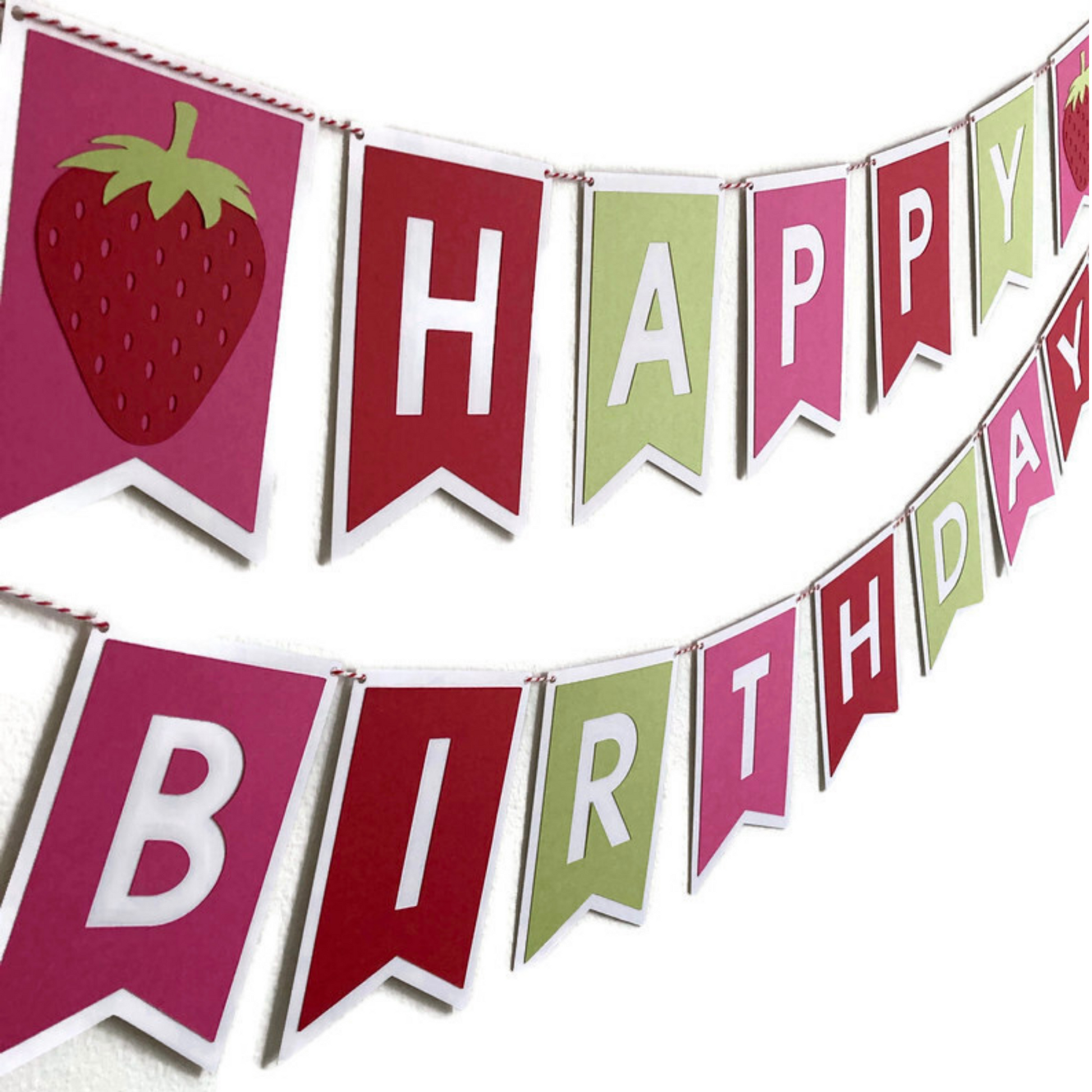 This listing is for one super adorable strawberry-themed "Happy Birthday" pennant banner. This is the perfect birthday banner for all ages! And the best part? You can use it over and over again!