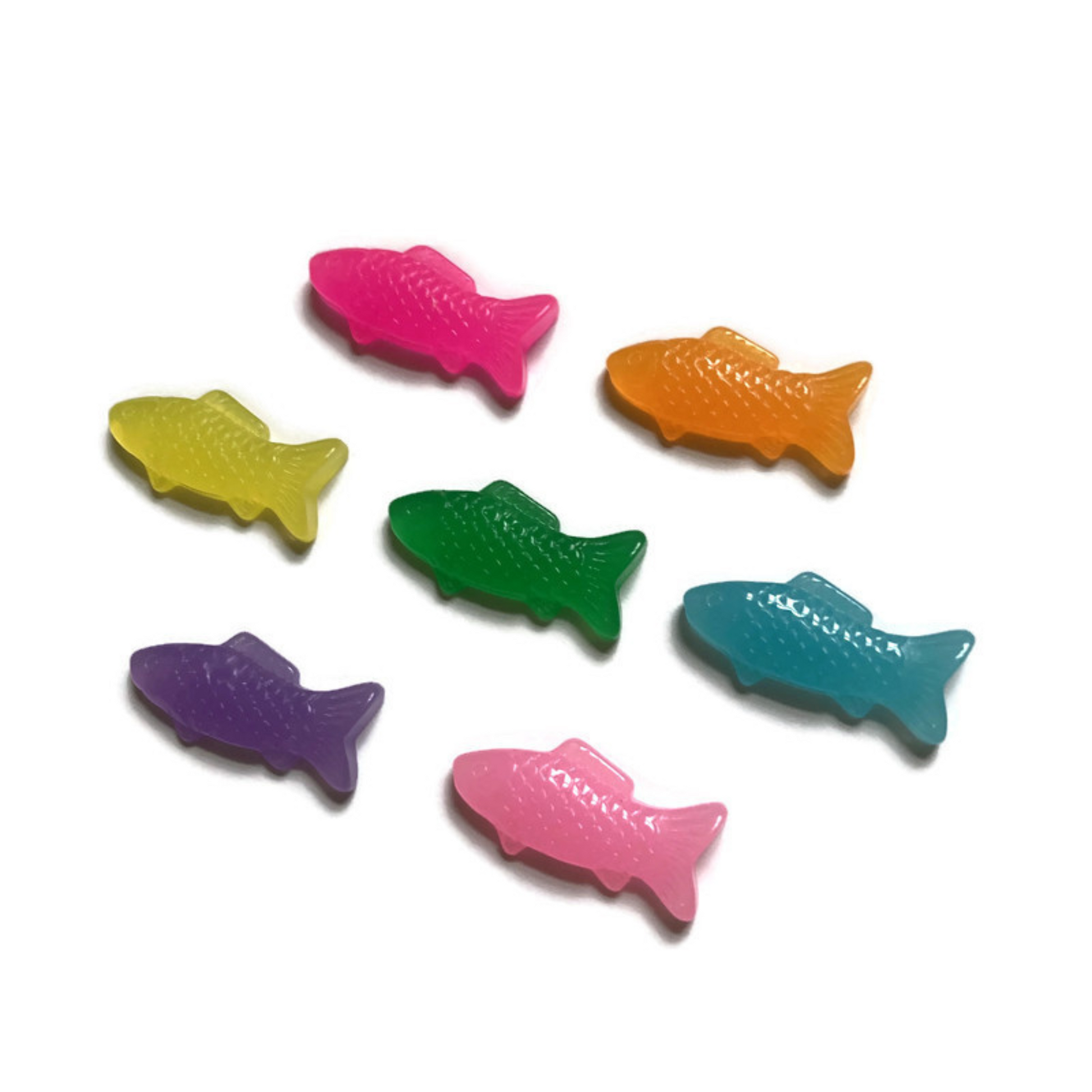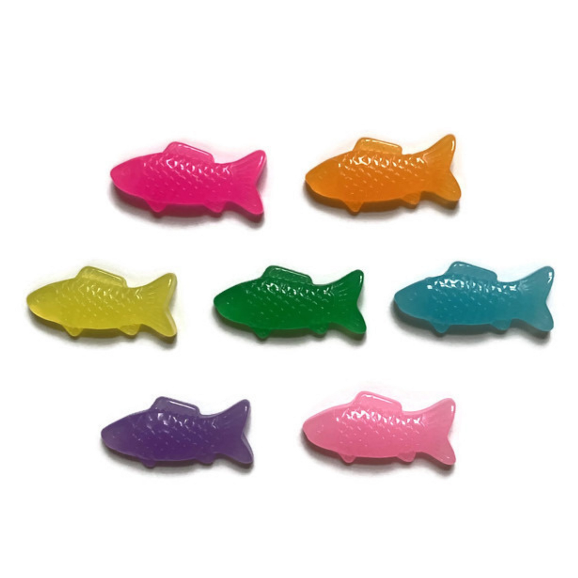 - Includes seven 23mm resin fish magnets