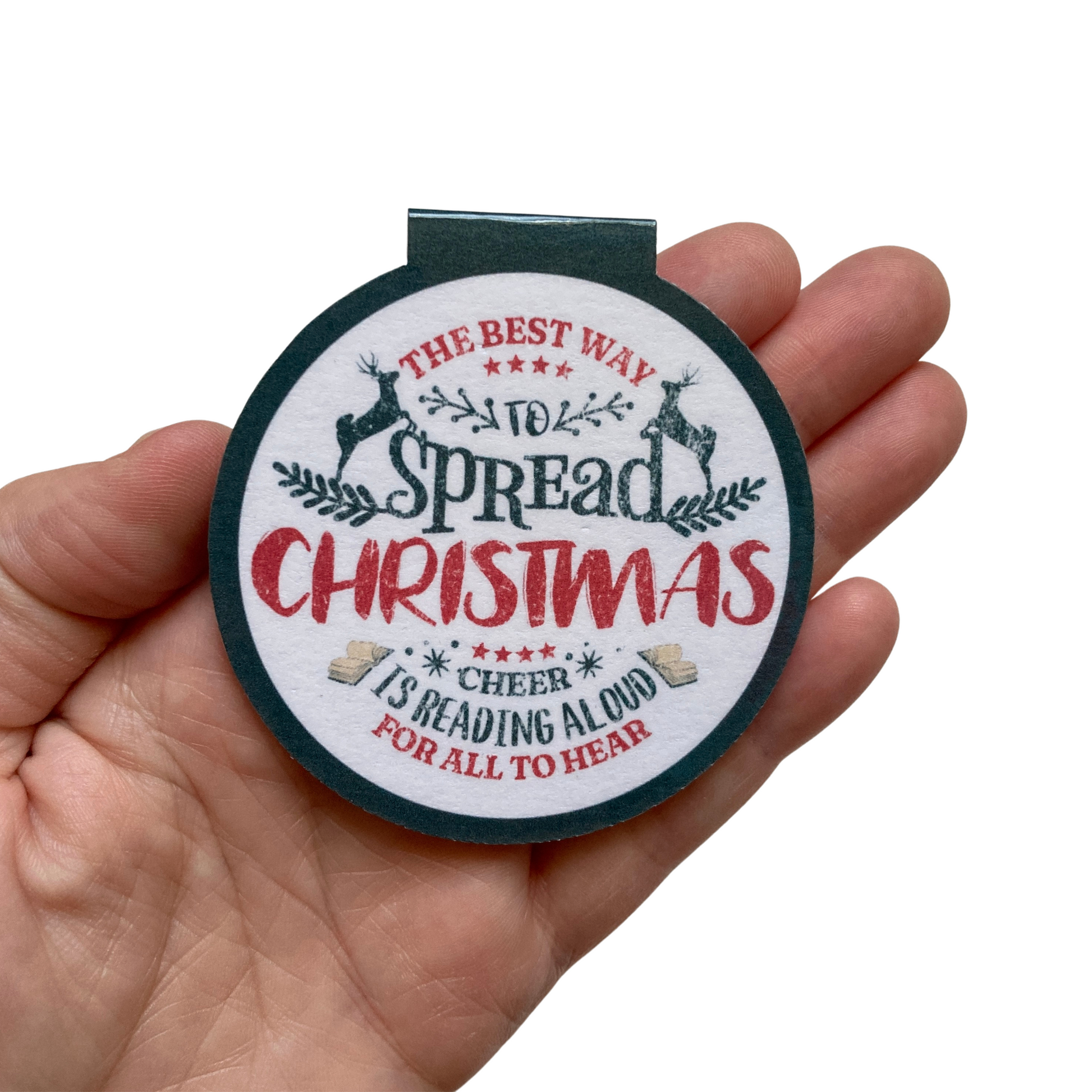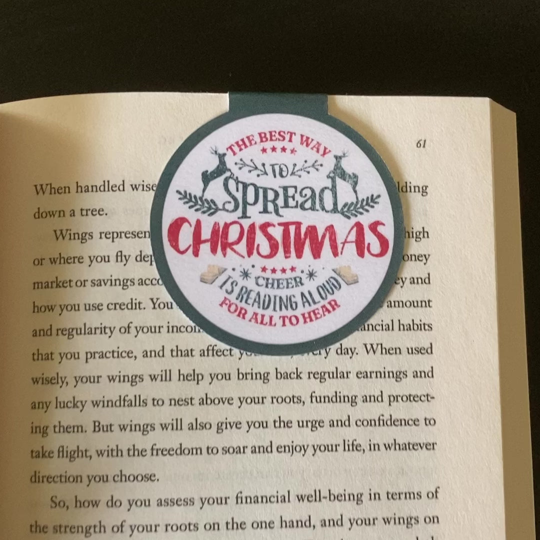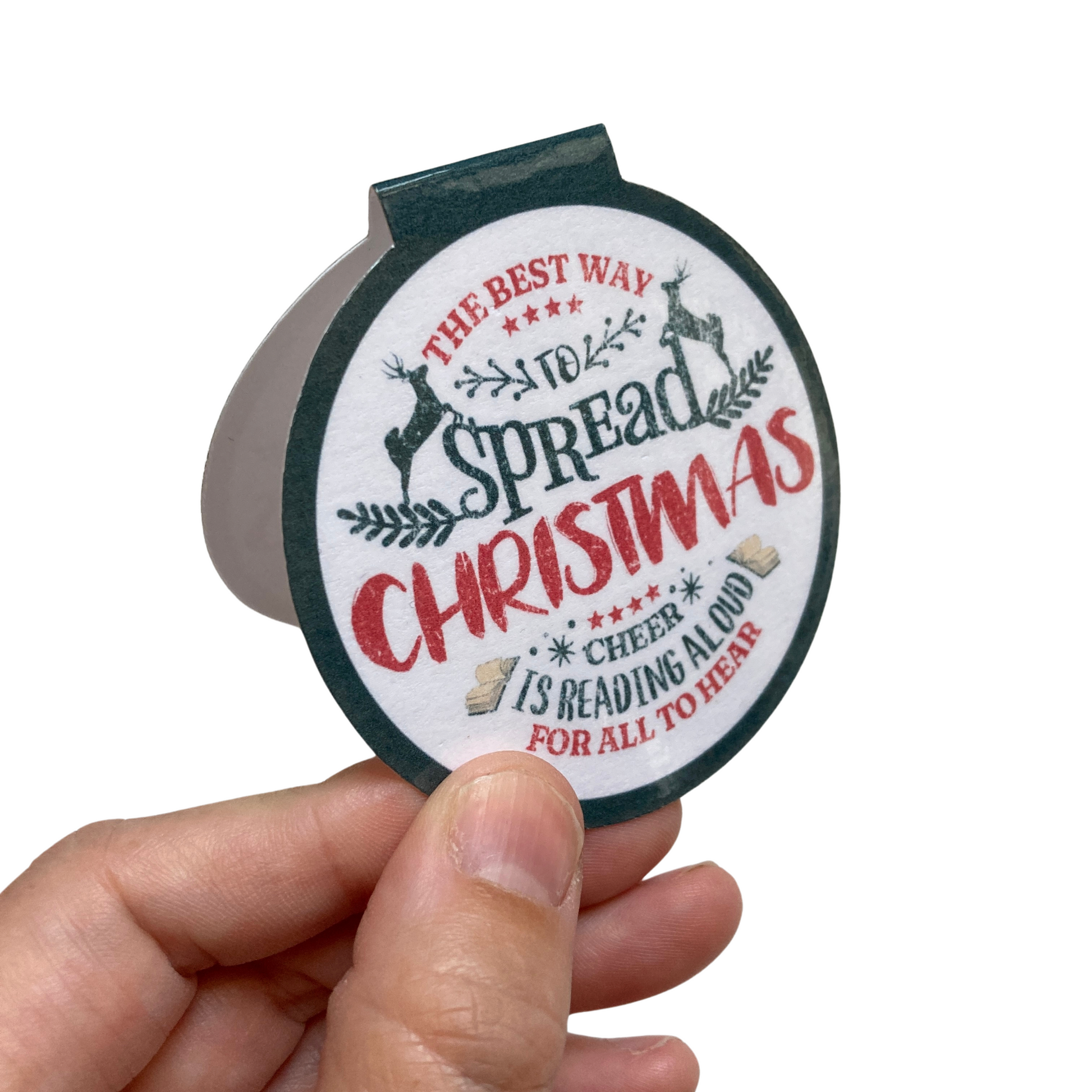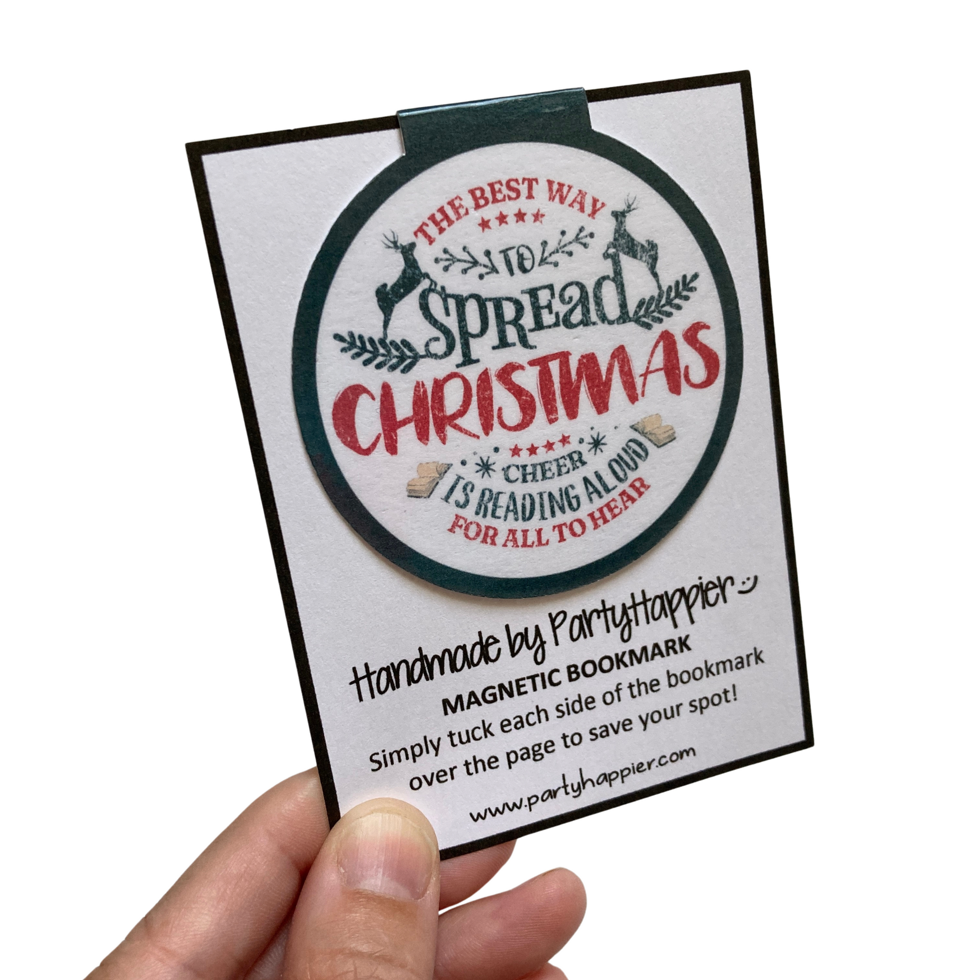 This listing is for one magnetic bookmark that says, "The Best Way To Spread Christmas Cheer Is Reading Aloud for All to Hear." It's perfect for holding your place just about anywhere! Use it in your favorite book, planner, notebook, or wherever your heart desires!