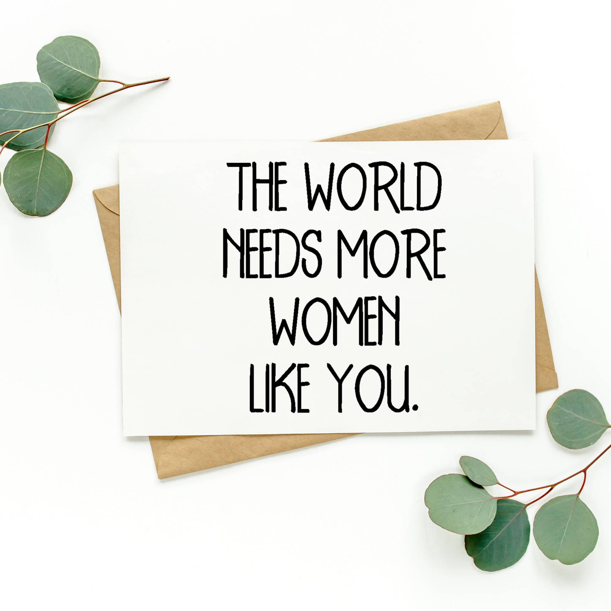 This listing is for one blank greeting card that says, "The World Needs More Women Like You." The card is a simple way to show someone how wonderful you think they are.