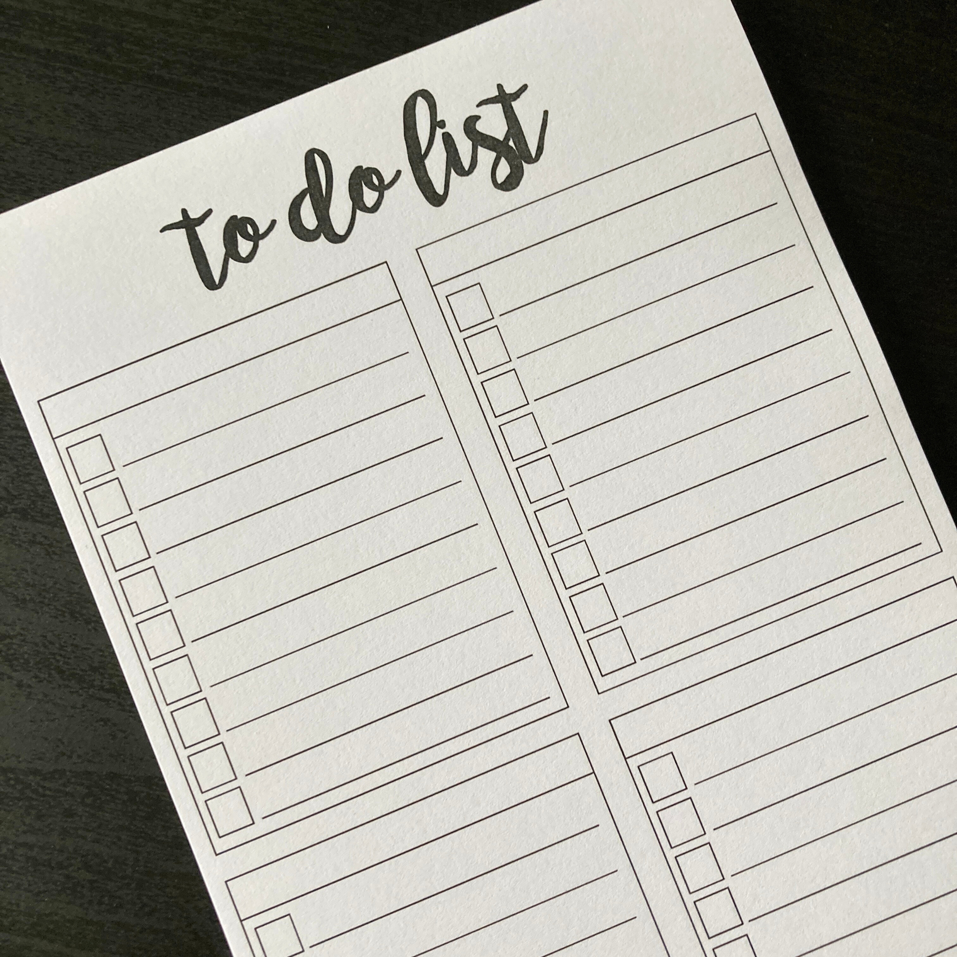 This listing is for one "To Do List" notepad. It features four columns, each with their own space for heading so that you can categorize your to-do list by type! Whether you want to use it for separating tasks at home, or to keep personal and work tasks organized, this notepad will meet your needs!