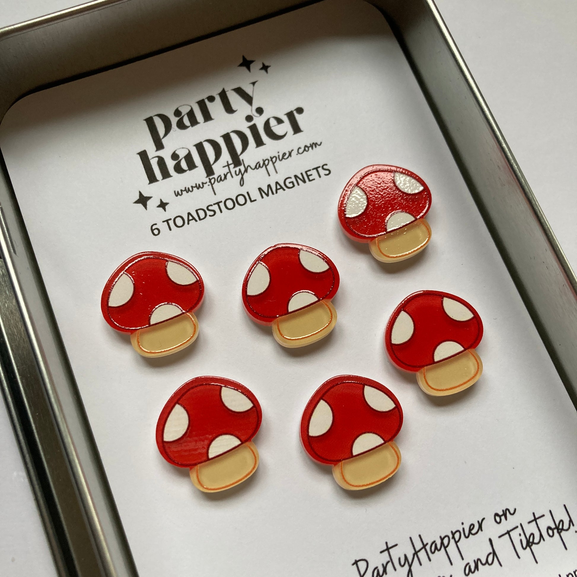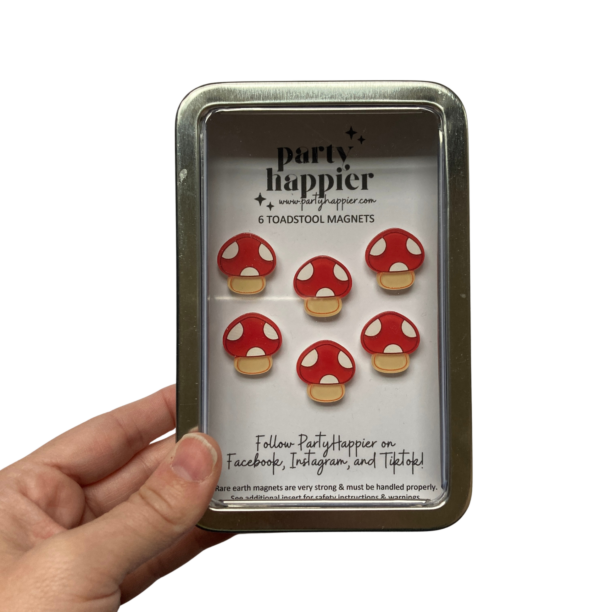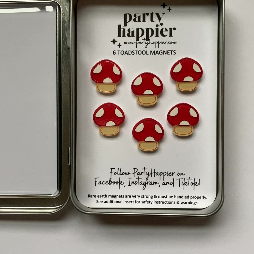 CAUTION: Magnets are not toys and should be kept out of reach of children and pets. Magnets can cause severe injury or death if ingested. Consult a medical professional immediately if swallowed. By purchasing these magnets, you are agreeing to PartyHappier's full safety warning.