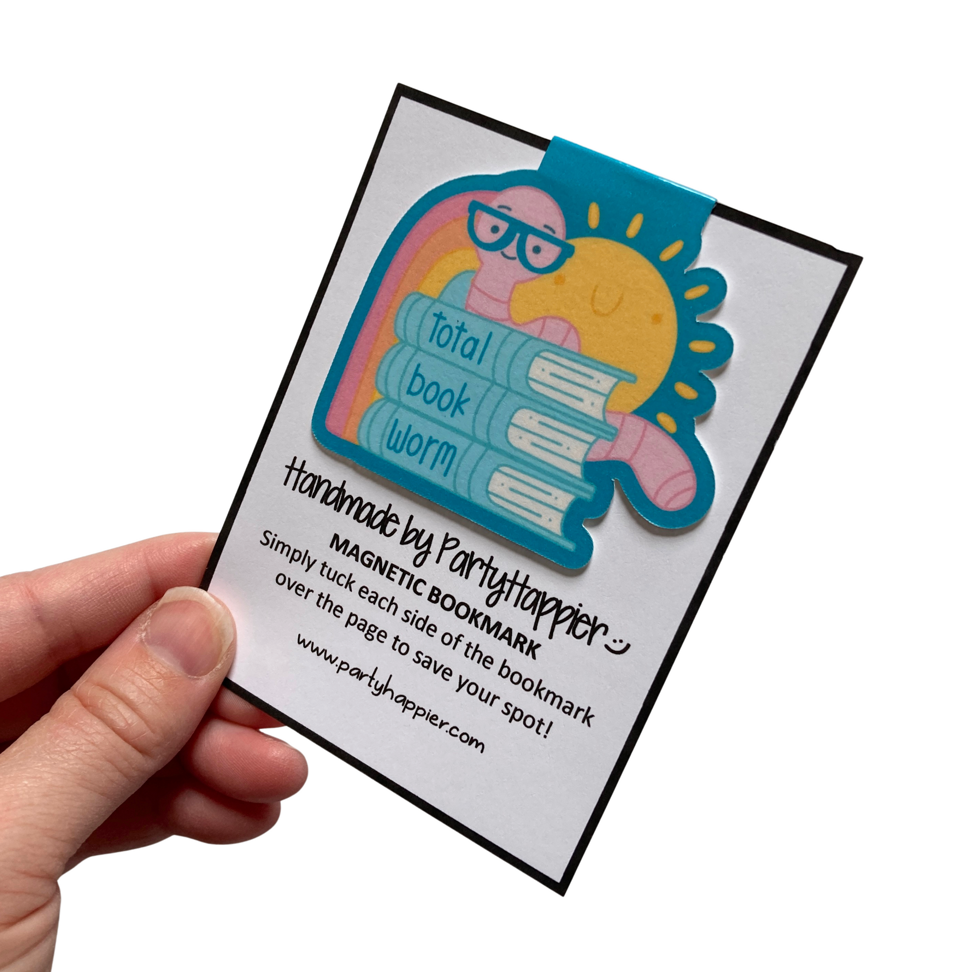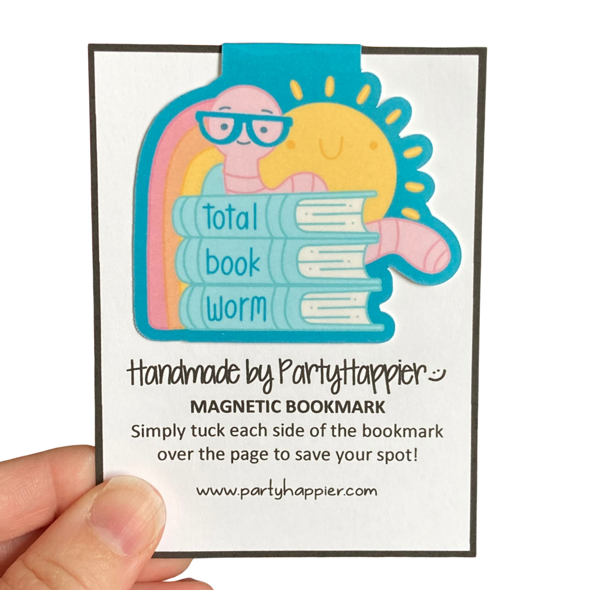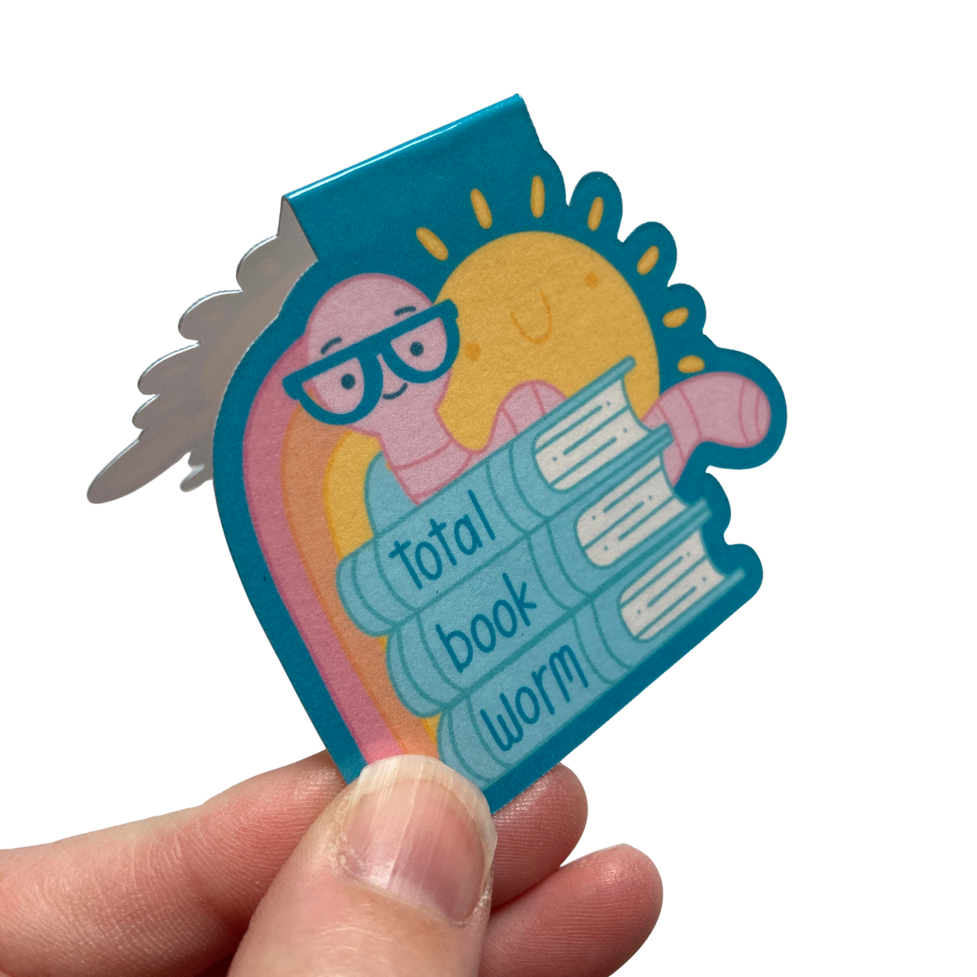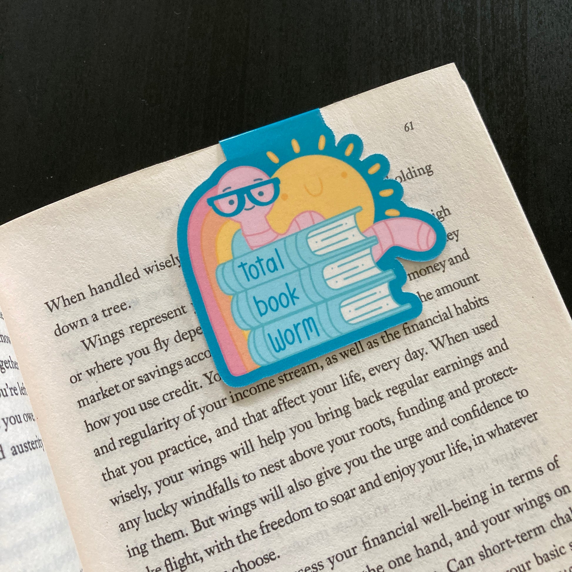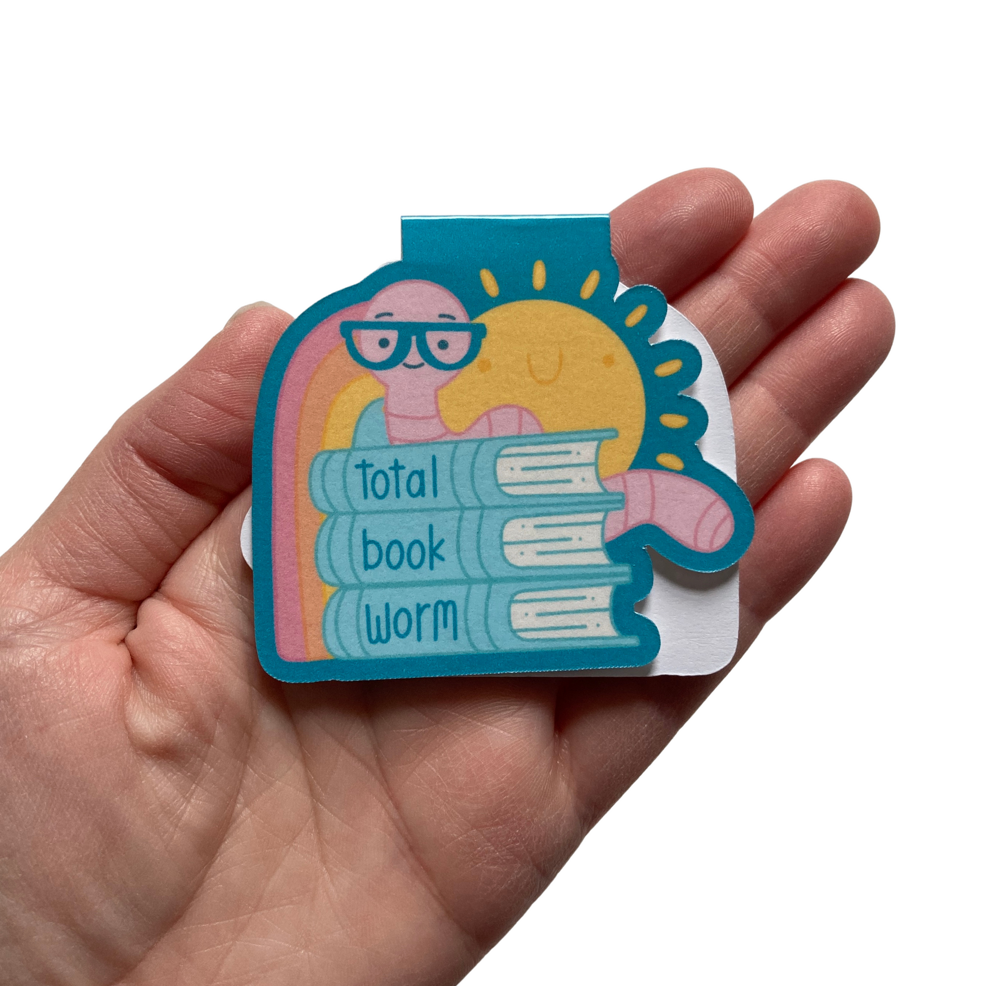 This listing is for one magnetic bookmark that says, "Total Bookworm." It's perfect for holding your place just about anywhere! Use it in your favorite book, planner, notebook, or wherever your heart desires!