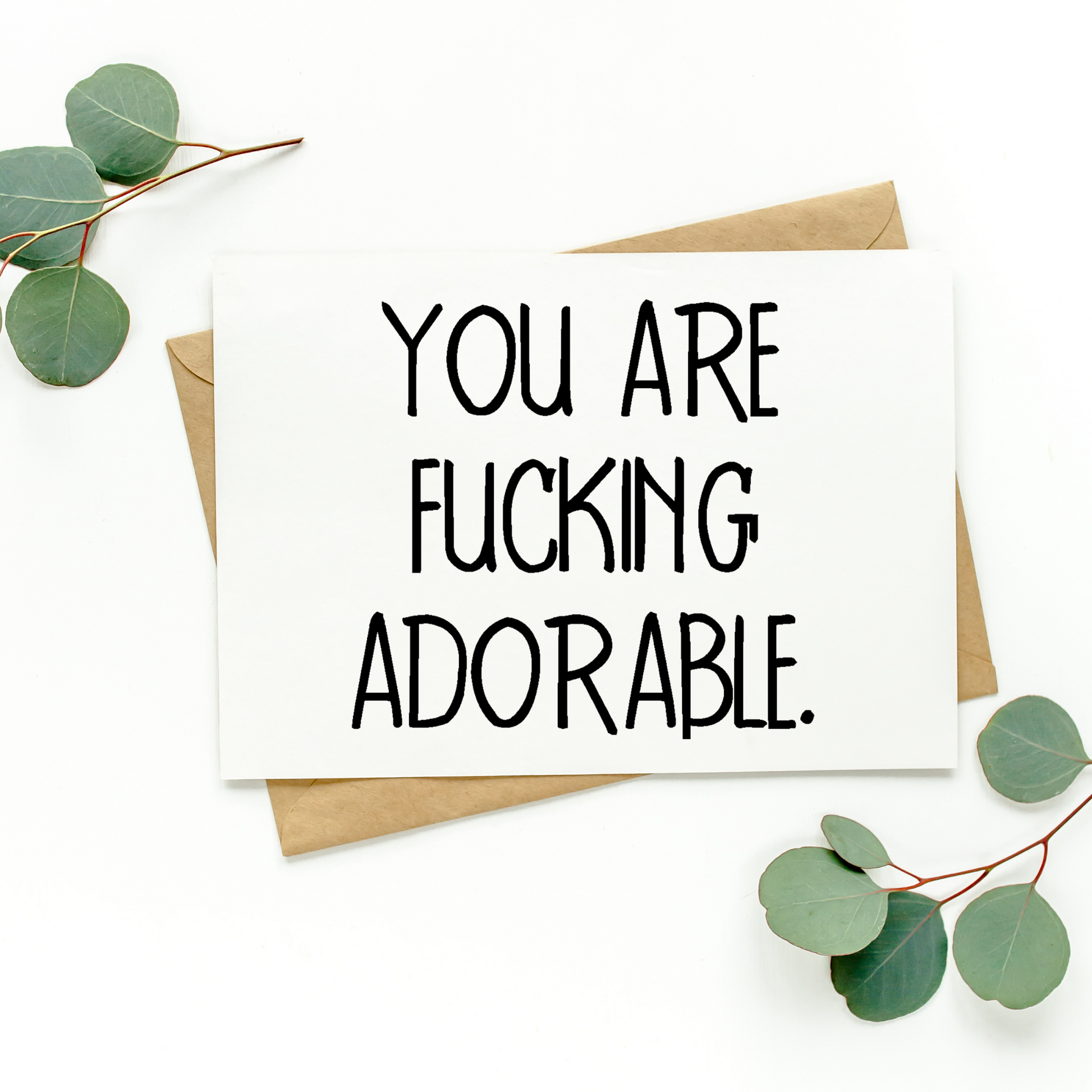 This listing is for one blank greeting card that says, "You Are Fucking Adorable." Enough said;)