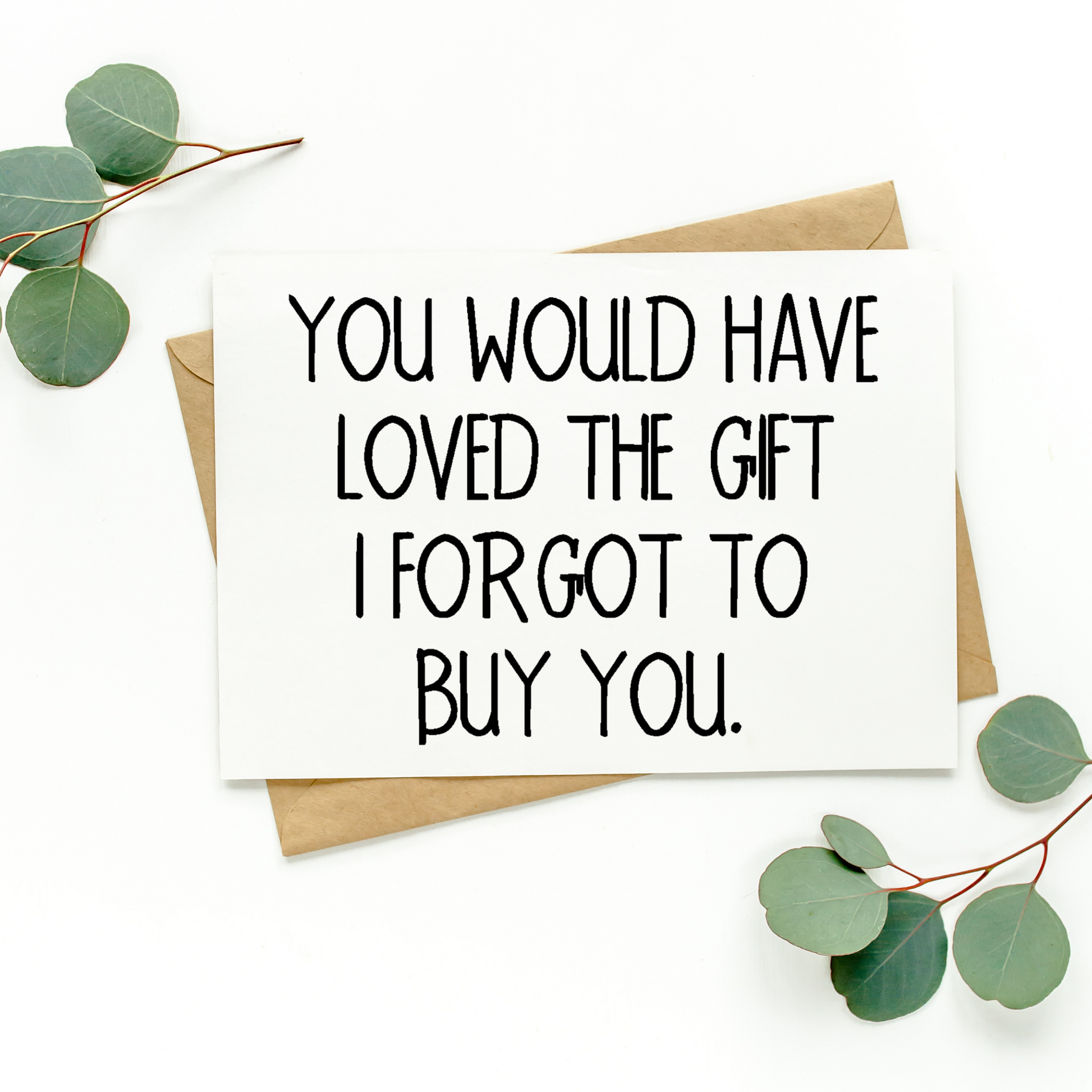 This listing is for one blank greeting card that says, "You Would Have Loved The Gift I Forgot To Buy You." The card is a hilarious way to celebrate someone's birthday or the holidays!